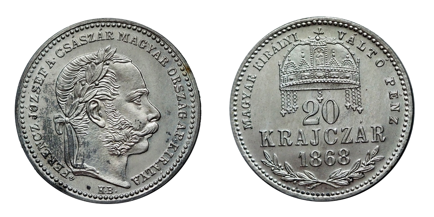 Ag 20 krajcár 1868 KB, rozettás Artex up. 1967-ből. 1000 példányban készült!
