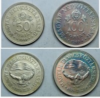 Ag 50 és 100 Ft a Tanácsköztársaság 50. évfordulójára.