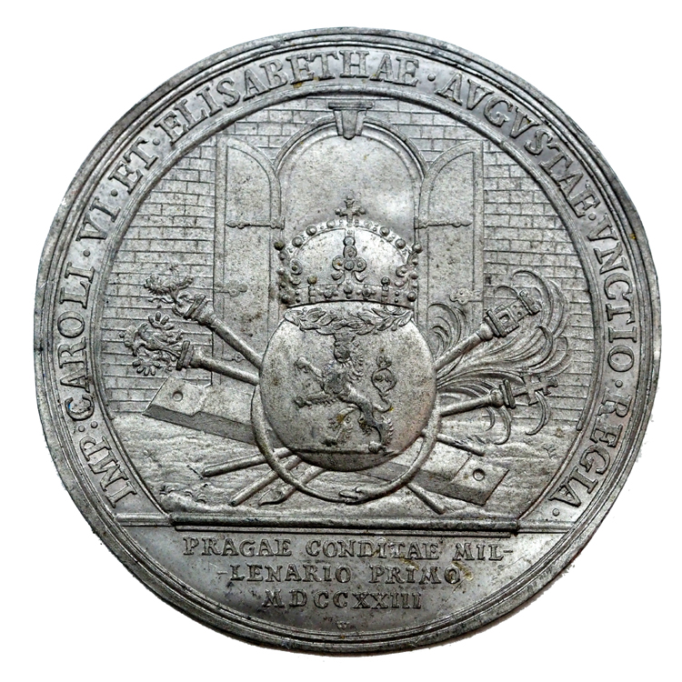 Ólom hátlapi leveret, Erzsébet Krisztina /VI.Károly feleséges, Mária Terézia édesanyja/ prágai koronázása emlékére 1723. szeptember 5.