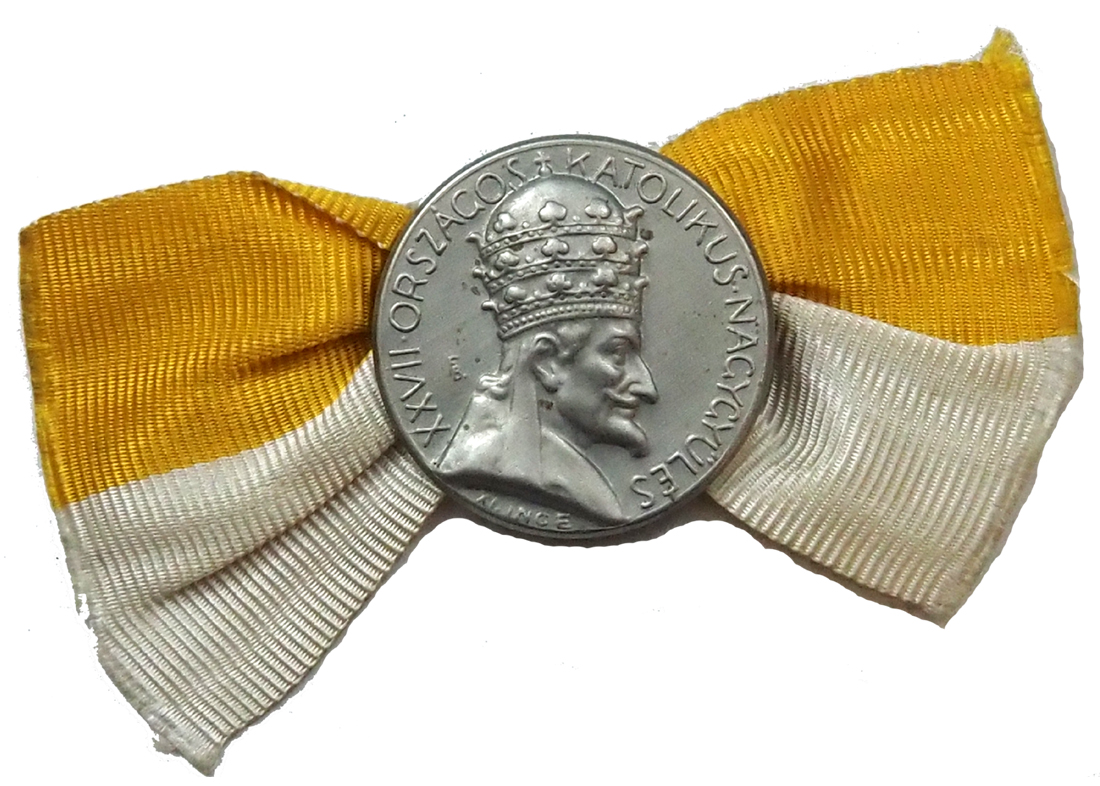 Al kitűző, eredeti szalagjával. Magyarországon 1894-ben rendezték meg az első fővárosi katolikus nagygyűlést, ez volt az előzménye az országos katolikus nagygyűléseknek. 1900 és 1943 között összesen 31 országos katolikus nagygyűlést szerveztek, két kivételtől eltekintve valamennyit Budapesten. 1933-ig a nagygyűléseket az Országos Katolikus Szövetség, attól kezdve az Actio Catholica szervezte.