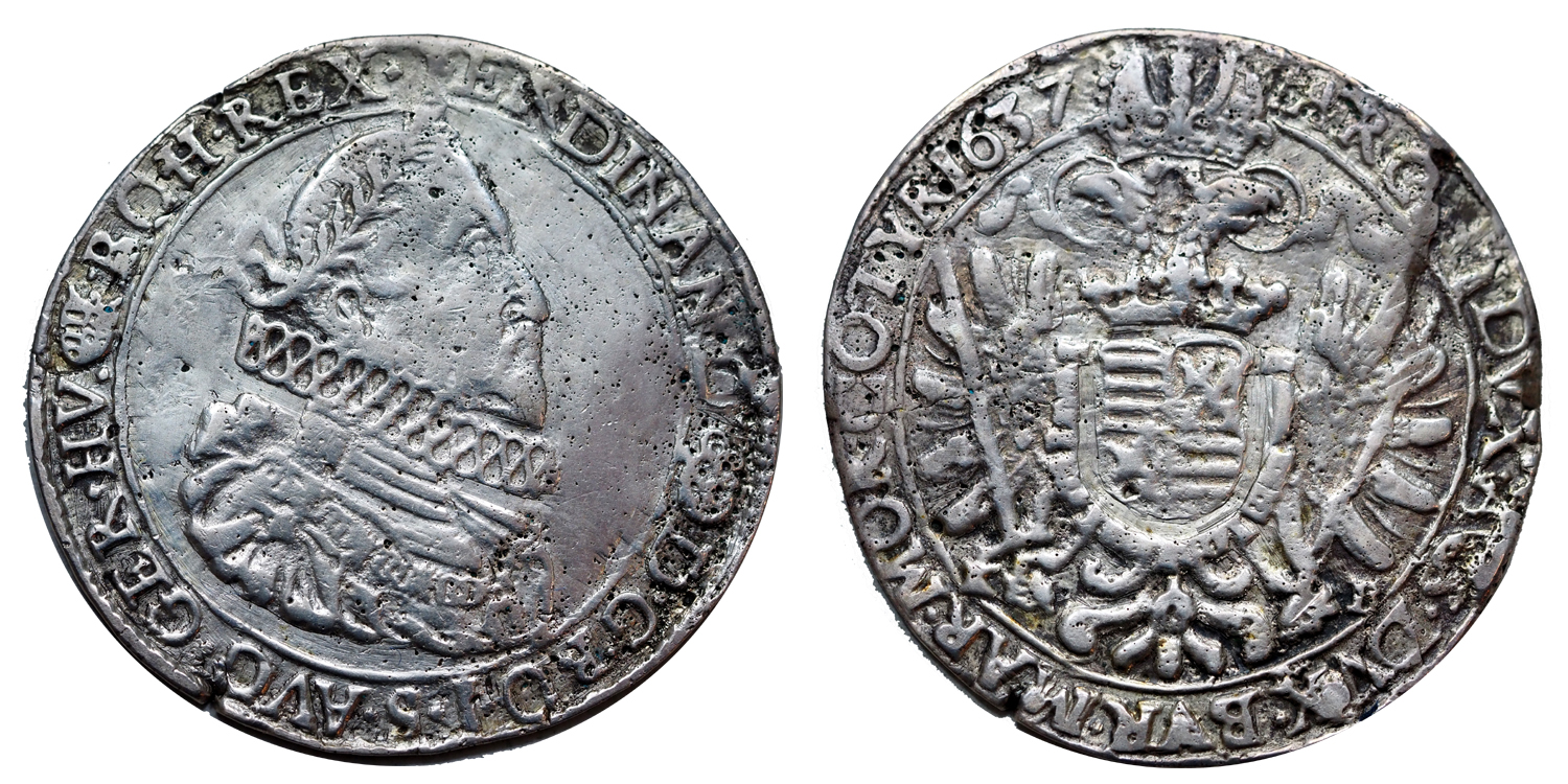 Ag tallér 1637 KB, igen ritka év, sajnos égett közegben volt, ezért hólyagos a felülete