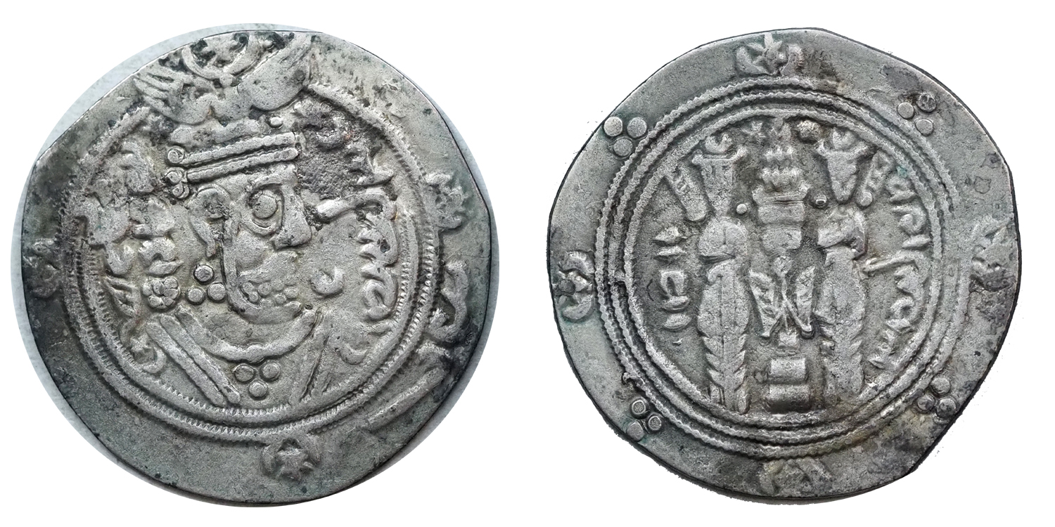 Ag hemidrachma, a Szasszanida drachmák mintájára, 790-ből. Ex. Harlan J. Berk, mellékelt cetlivel