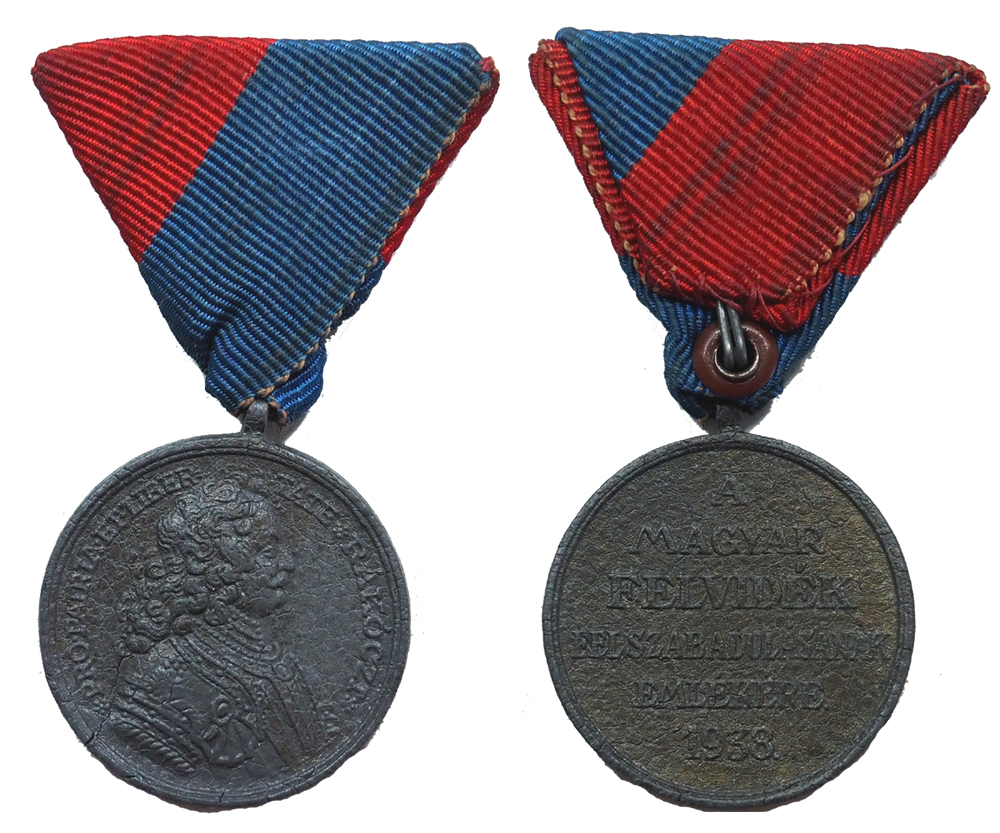 Felvidéki Emlékérem 1938. Ez az igen ritka horgany változat /szemben a mindig előforduló bronzzal/, eredeti szalagján.