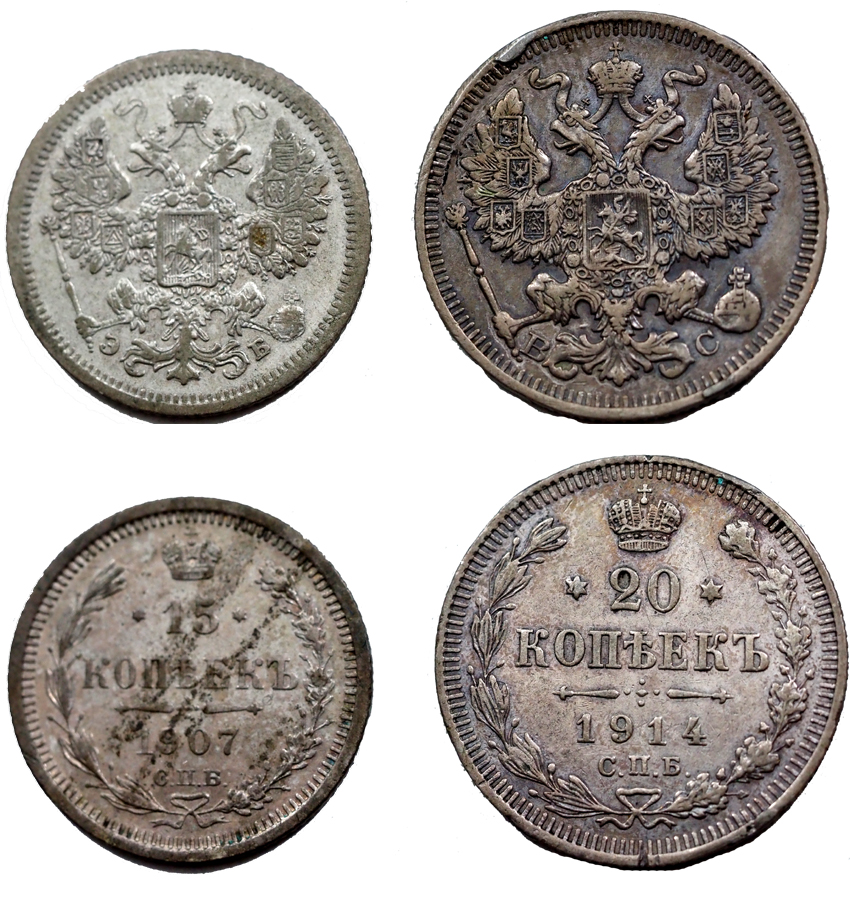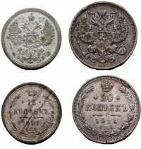 Ag 15 kopek 1907, 20 kopek 1914 Szentpétervár