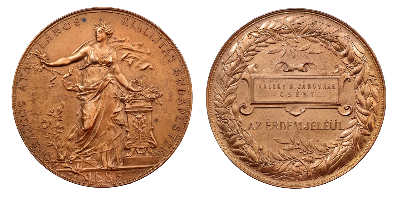 Br emlékérem, Az érdem jeléül, Országos Általános Kiállítás. Kállay N. Jánosnak Csény. Ez a ritkábbik, vastagabb változat!